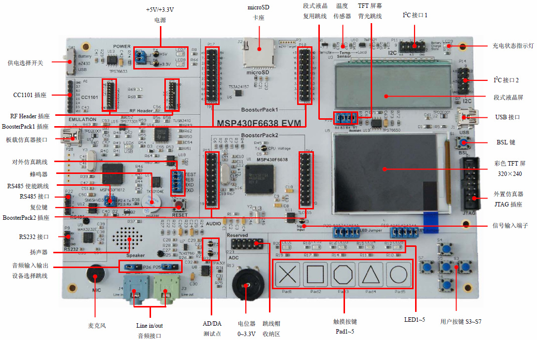MSP430F6638綜合實(shí)驗(yàn)系統(tǒng)主板、電池模塊、鍵盤(pán)模塊、電機(jī)模塊4個(gè)模塊構(gòu)成,布局緊湊、工藝精良。系統(tǒng)以TI公司MSP430F6638 MCU為核心,外圍配以由TI公司高性能模擬、數(shù)字及電源管理芯片,再加上完善的教材及課件,構(gòu)成了一套高端MCU教學(xué)開(kāi)發(fā)系統(tǒng)。這套系統(tǒng)不僅適合單片機(jī)系統(tǒng)開(kāi)發(fā)、計(jì)算機(jī)硬件技術(shù)等課程教學(xué),也適合作為學(xué)生科技創(chuàng)新、電設(shè)大賽平臺(tái)使用。
