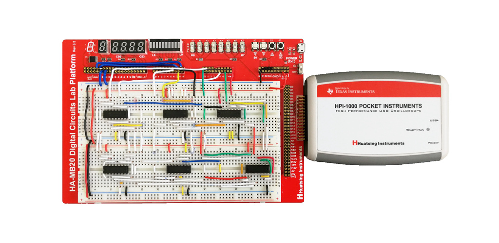華清科儀與清華大學(xué)聯(lián)合推出的DCLK-2000數(shù)字電路實(shí)驗(yàn)套件可以與HPI-1000多功能口袋儀器(另購(gòu))無(wú)縫連接配套使用,能夠完成眾多實(shí)驗(yàn)項(xiàng)目,基本覆蓋了數(shù)字電路實(shí)驗(yàn)課程各個(gè)知識(shí)點(diǎn)。整個(gè)套件收納在一個(gè)精致的塑料盒中,包含HA-MB20混合電路實(shí)驗(yàn)板、配套芯片、元器件、工具等。套件小巧靈活、整理收納方便,適合學(xué)生在課堂外使用,使得實(shí)驗(yàn)課不再受時(shí)間和空間的制約。DCLK-2000數(shù)字電路實(shí)驗(yàn)套件以及HPI-1000多功能口袋儀器已經(jīng)在清華大學(xué)電工電子實(shí)驗(yàn)中心實(shí)驗(yàn)教學(xué)中得到使用,效果良好。該套件配有完整的教學(xué)資料。